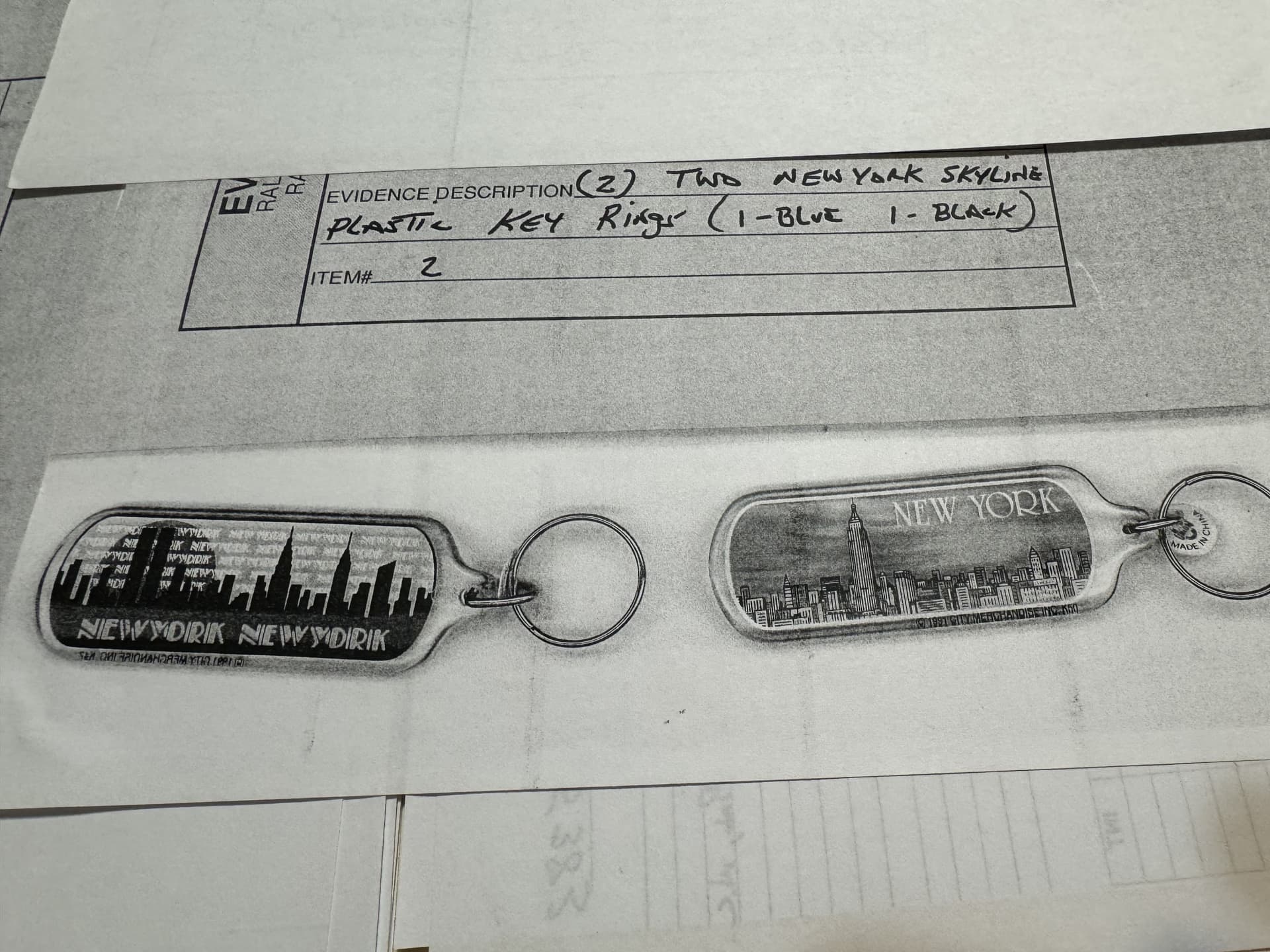 BELOW: Are possible New York City skyline key rings, like the one Beth-Ellen had. These were obtained by the police during the investigation, which were the best approximation based on the description provided by friends and family.